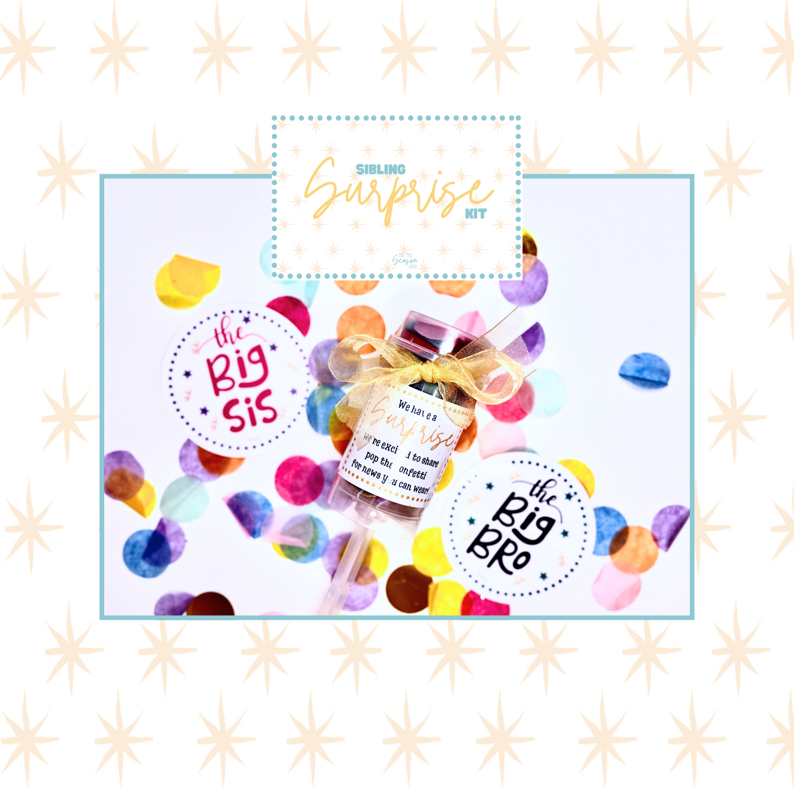 Make becoming a big sibling a moment to remember with a confetti popper revealing the news and sticker to proudly wear.